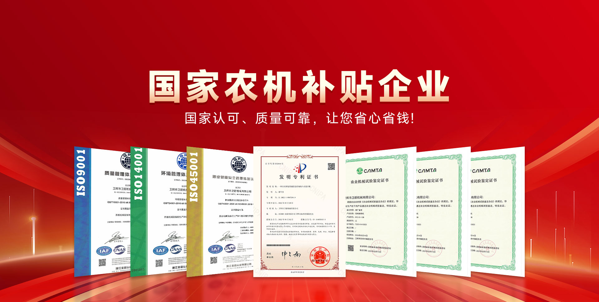 中國 河南衛輝市衛新機械有限公司坐落在中原歷史名城衛輝市,是一家集養殖機械產品研發、制造、銷售于一體的多元化高新科技公司。公司注冊資金500萬元、現有員工100余人,我們以國際企業為標準,高起點;高標準的從事養殖機械產品的研究與推廣。產品曾多次獲得上級產品質量獎,目前產品暢銷三十多個省市自治區,享有良好的市場榮譽,贏得了用戶的好評。  公司始終堅持以嚴格的管理制度,保證高質量的產品服務用戶。有品質才有市場,有改善才有進步。我們相信,提供更好的產品,才是回報客戶更好的辦法?! ?019年我公司被定為河南省農機購置補貼企業。同年,我公司與北京機械研究院共同起草了粉碎機的三項國家標準和行業標準。2010年、2012年、2013年我公司被選為農機補貼企業?! ∥夜臼侵睾贤?、守信用單位,我們將以更好的產品質量、優惠的價格、良好的售后,竭誠為用戶服務。